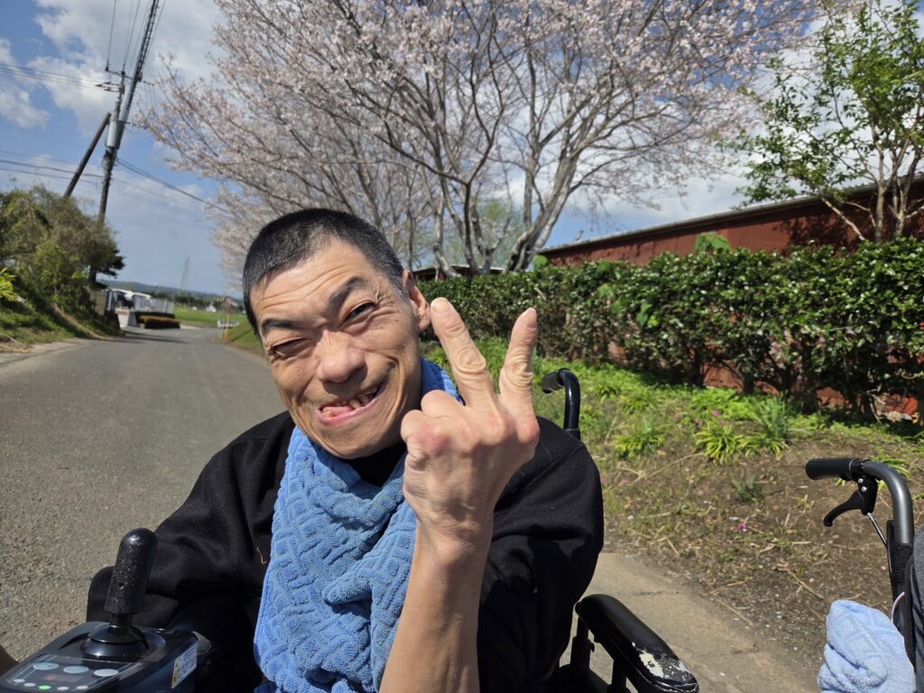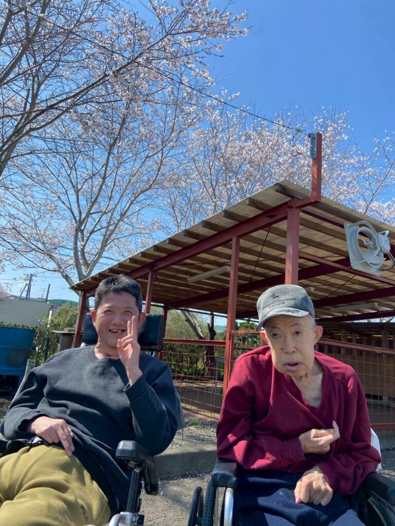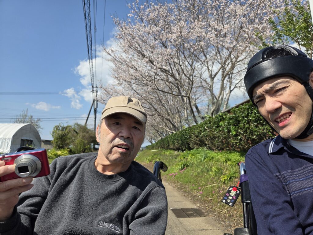 施設から出発して、さくら館の前を通ると、満開の見事な桜が並んでおり、記念に撮影をさせていただきました。さくら館スタッフの方もやさしくお声掛けしていただき、楽しいひと時を過ごすことができました。どうもありがとうございました。