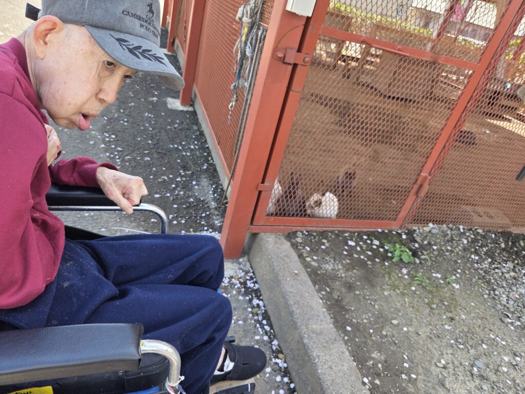 さくら館のお庭には、たくさんのウサギさんやヤギさんが飼育されていて、かわいい姿にみなさんウットリされていました。また遊びにくるねとお別れをして、短いコースでしたがお花見散歩を楽しませていただきました。