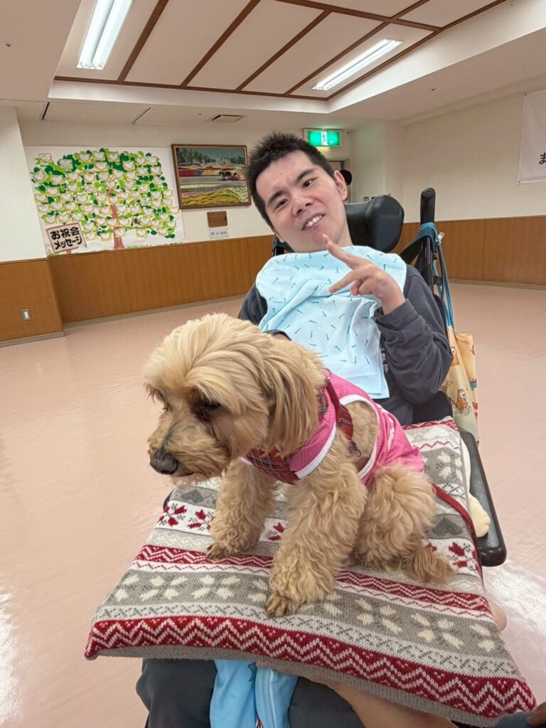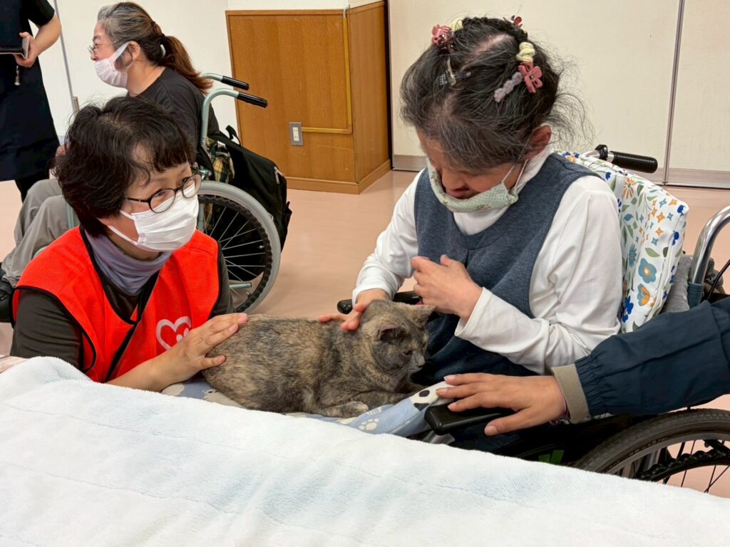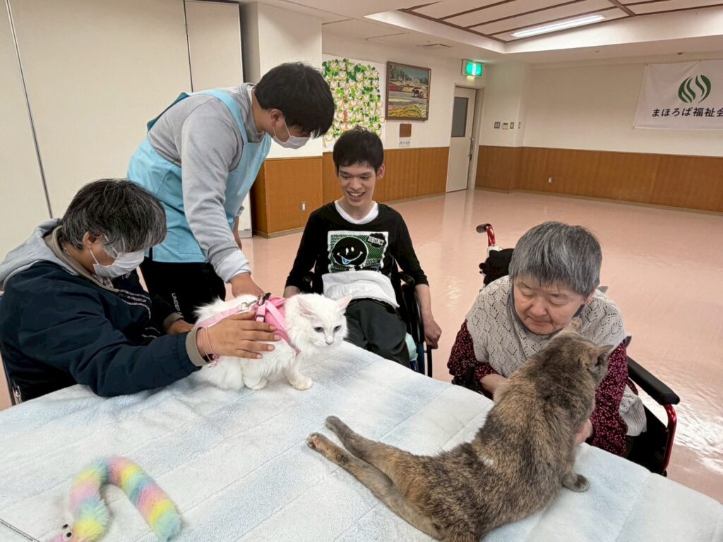 わんこと、にゃんこを前にすると、自然と表情がやわらぎ、優しくなでたり、じっと見つめたり、話しかけたりと、それぞれの形で楽しまれている様子が見られました。普段の活動の中ではなかなか見られないような、やわらかな表情や反応もあり、職員にとっても心に残るひとときとなりました(๑˃̵ᴗ˂̵)