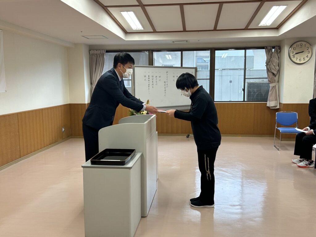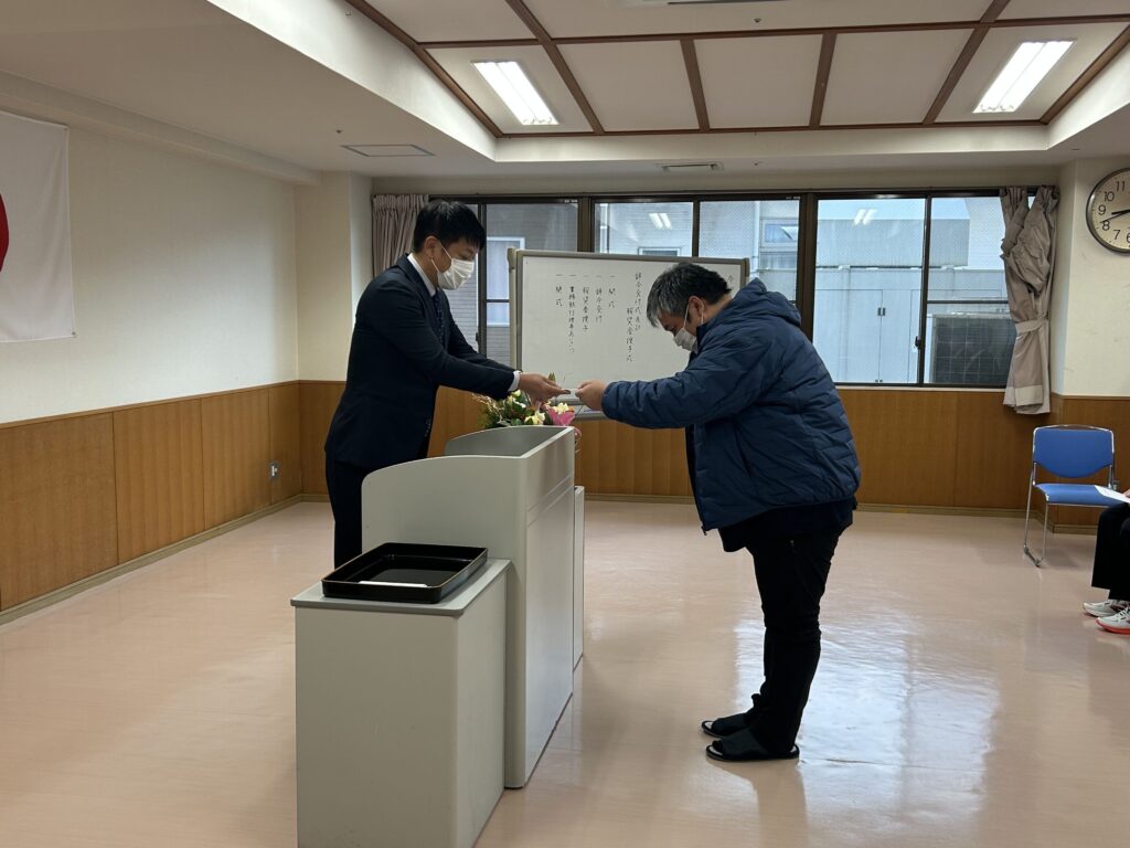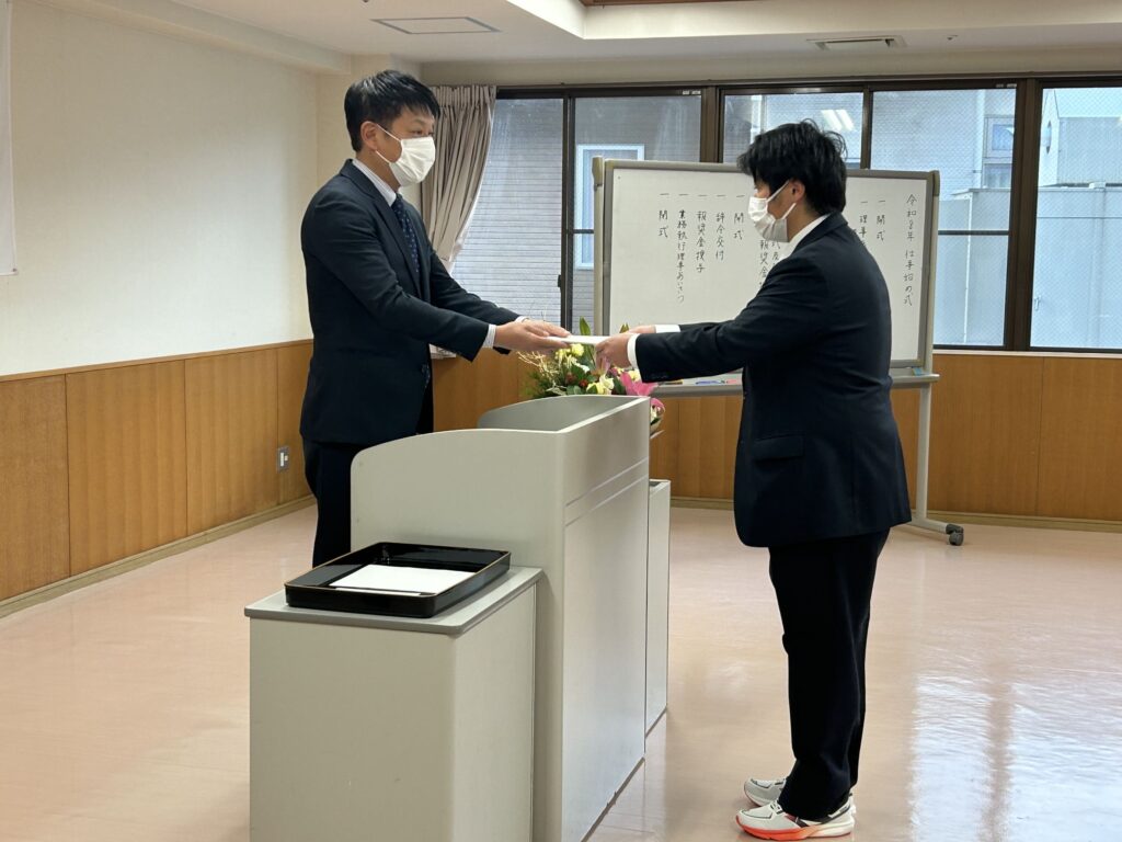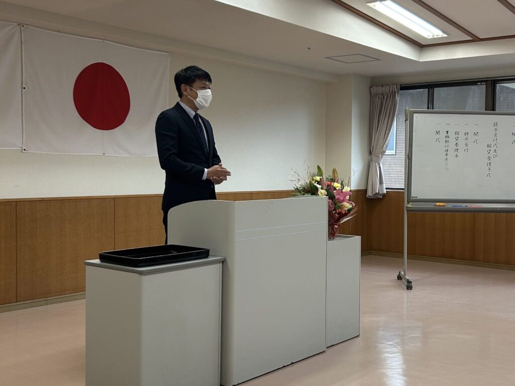 事業運営に特に貢献された職員の皆さんへ報奨金が授与され、最後に業務執行理事より挨拶をいただきました。