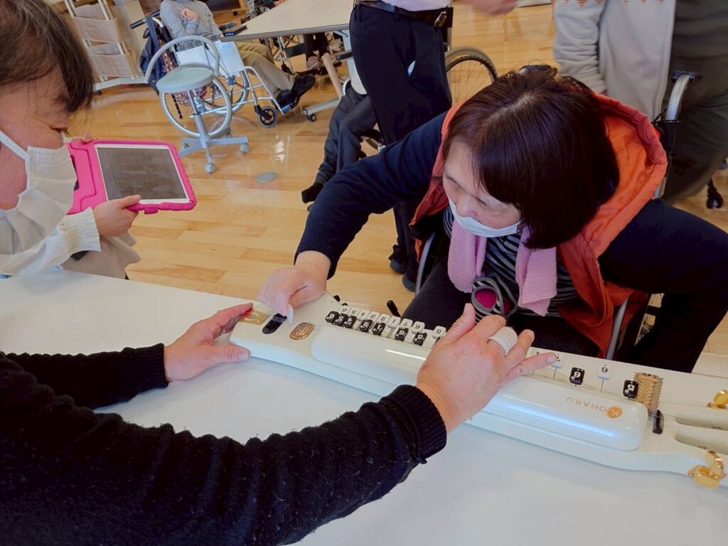最後に大正琴を触ってみませんか?と快く言ってくださった時には皆さん興味深く触る方や弾き方を教えてくれて、とても楽しかったと言われてました(‘▽’)