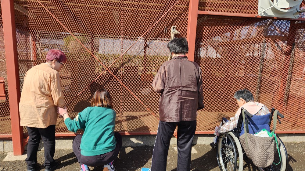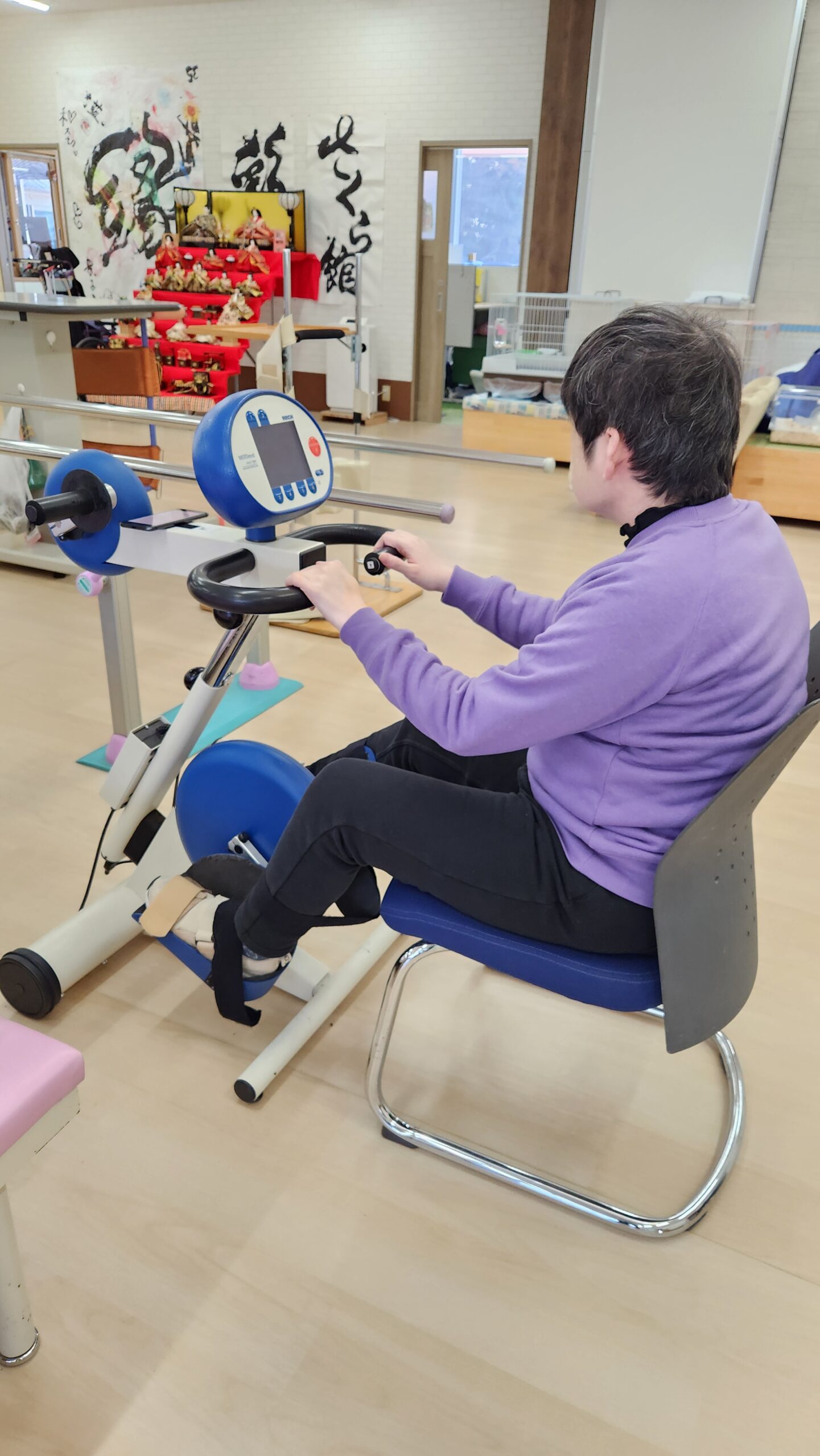 祝日の「さくら館」は、自主リハビリを頑張る方、散歩してウサギを