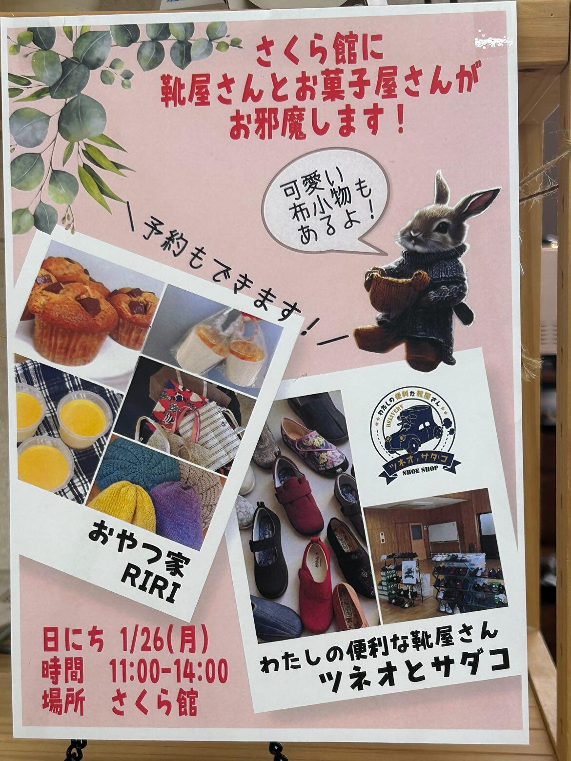 1/26(月)「ツネオとサダコ」さん(靴屋)と「おやつ屋RIRI」さん(お菓子)が