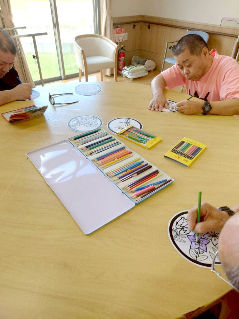 通所の皆さん、非常に塗り絵が得意な方々が多く、作品を仕上げるたびに