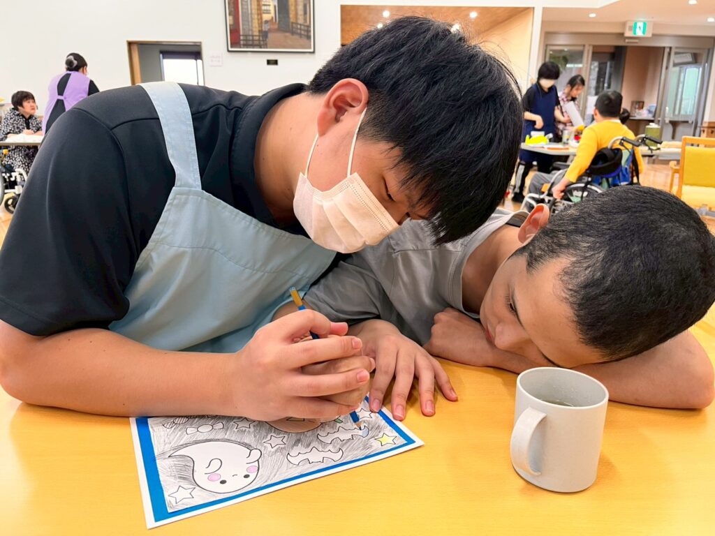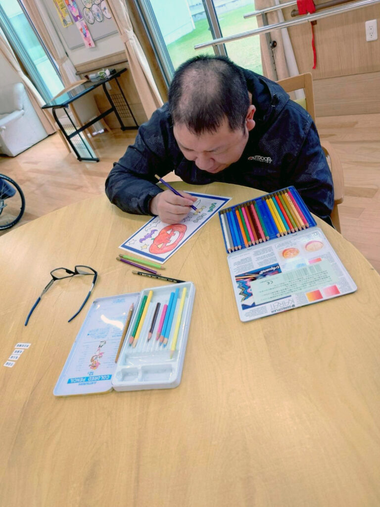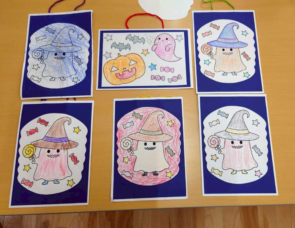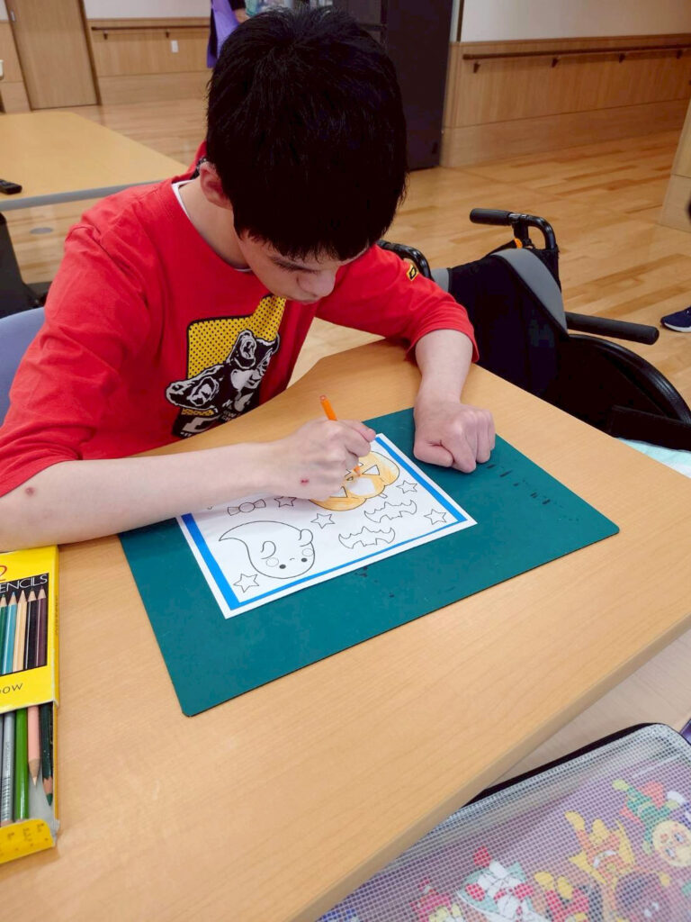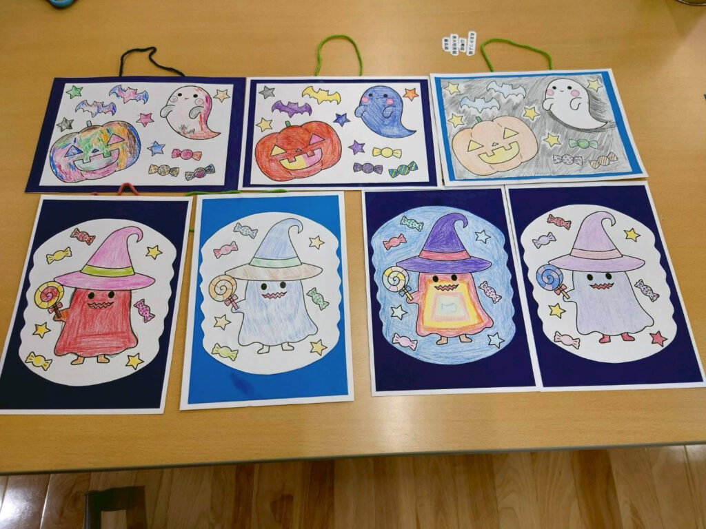 またハロウィンに向けた塗り絵もそれぞれ思い思いに塗ることが