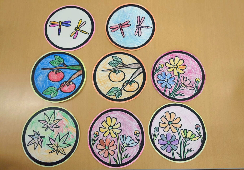 コスモスやとんぼ、柿など皆さん綺麗に彩り仕上げてます(´꒳`)